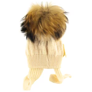 Bonnet tricoté beige pour nouveau-né avec pompon en fourrure et appliqué voiture
