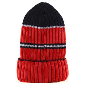 Bonnet en laine côtelée rouge et noire avec revers et patch étoile brodé