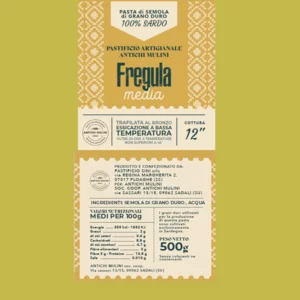 Format et conditionnement : fregula moyenne, pâtes sèches en paquet de 500g