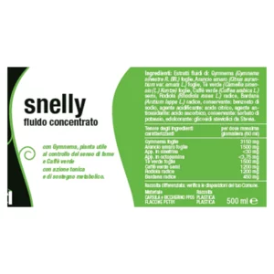 Extraits fluides de feuilles de gymnema (Gymnema sylvestre R. Br.), de feuilles d'oranger amer (Citrus aurantium var. amara L.), de feuilles de thé vert (Camellia sinensis L.), de graines de café vert (Coffea arabica L.), de racine de rhodiola (Rhodiola rosea L.), de racine de bardane (Arctium lappa L.) ; correcteur d'acidité : acide citrique ; conservateurs : benzoate de sodium, sorbate de potassium ; antioxydant : acide ascorbique ; édulcorant : glycosides de stévia.