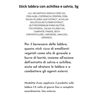 DESCRIPTIONLe Baume à Lèvres Achillée Millefeuille et Sauge est votre allié quotidien pour des lèvres douces, hydratées et protégées.