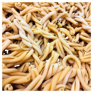 DESCRIPTIONLes casarecce di ceci sont des pâtes artisanales à base de légumineuses, fabriquées avec de la farine de pois chiches moulue sur pierre, afin de préserver toutes les caractéristiques et les nutriments de la légumineuse.