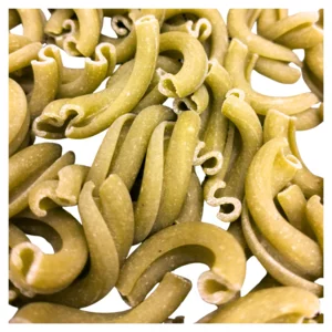 Les casarecce aux pois sont des pâtes artisanales à base de légumineuses, fabriquées avec de la farine de pois verts moulue sur pierre, préservant ainsi toutes les propriétés et la saveur authentique de la légumineuse.